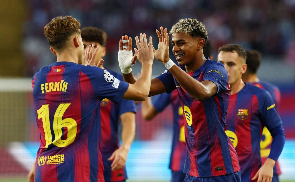 上半场比赛进行到第7分钟,亚马尔在禁区右侧突破过人后传球给费尔明,后者横传射门得手,为巴萨取得领先。